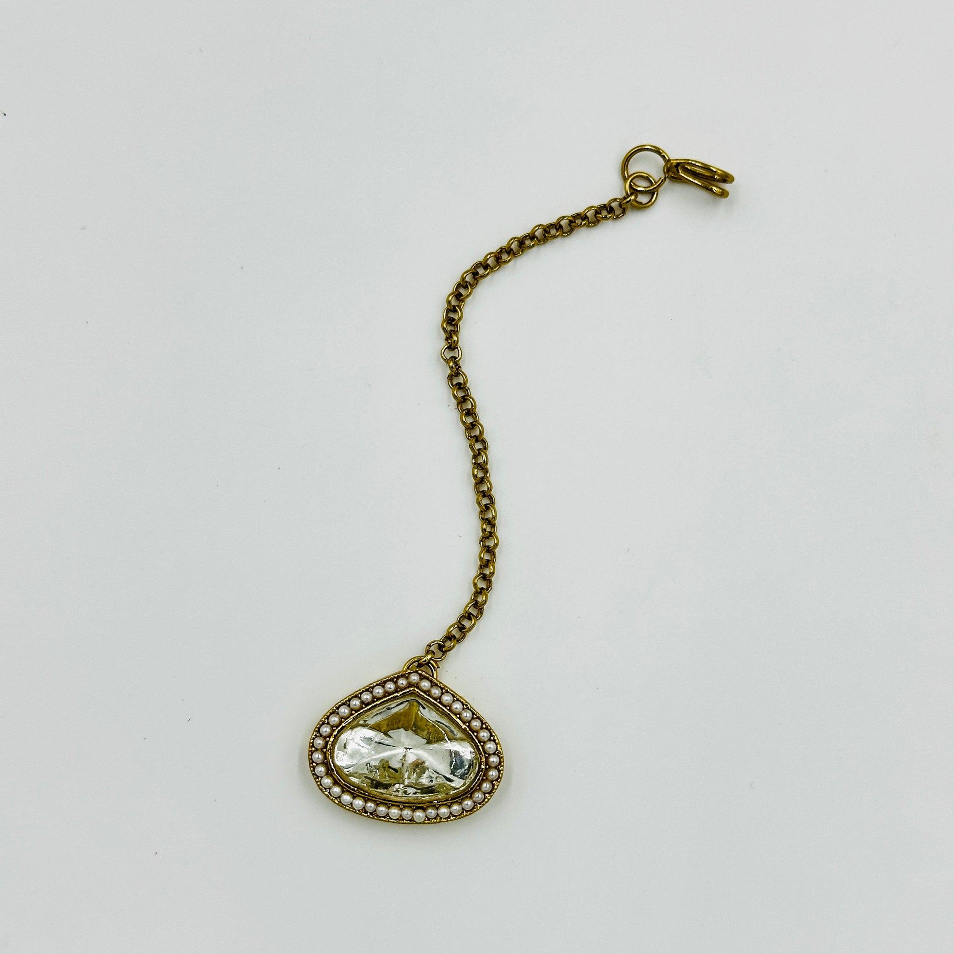 Antique Gold-Plated Kundan Necklace Set with White Stones & Maang Tikka