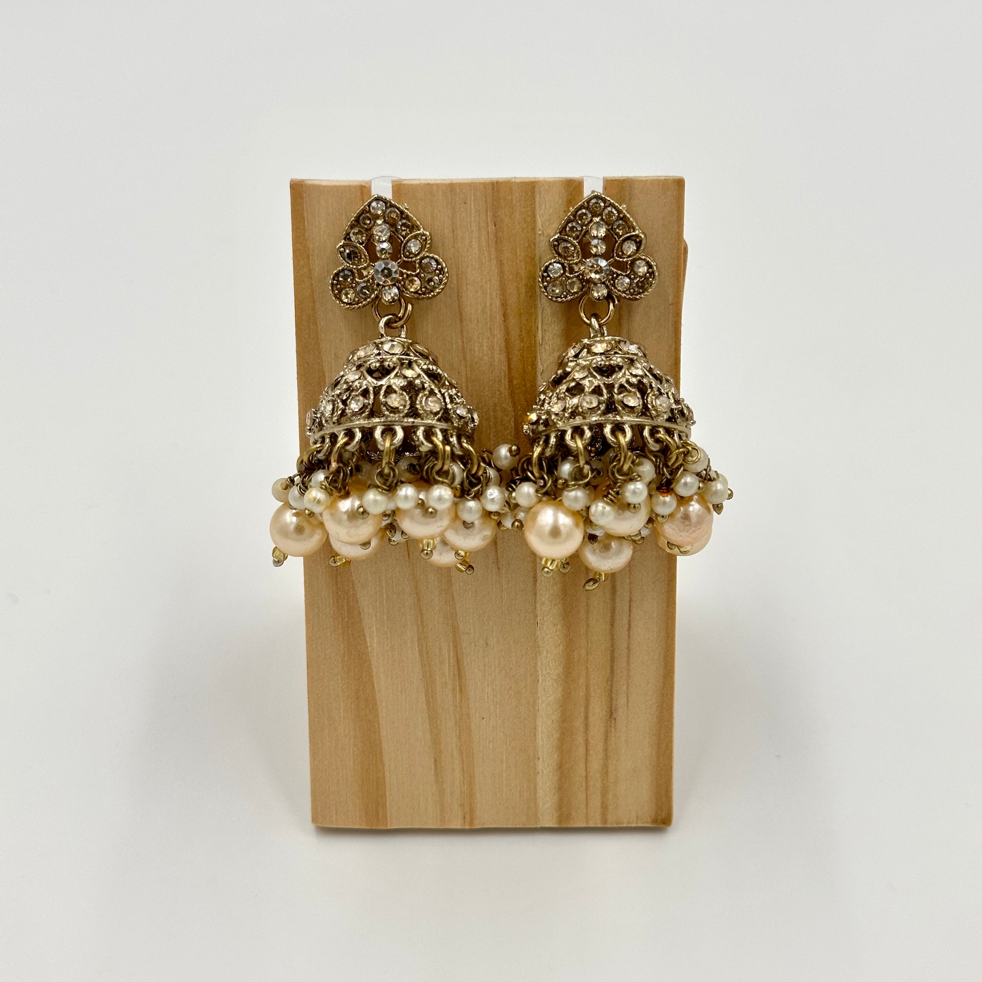 Antique Gold-Plated Pearl & Kundan Choker Necklace Set with Jhumka Earrings & Maang Tikka