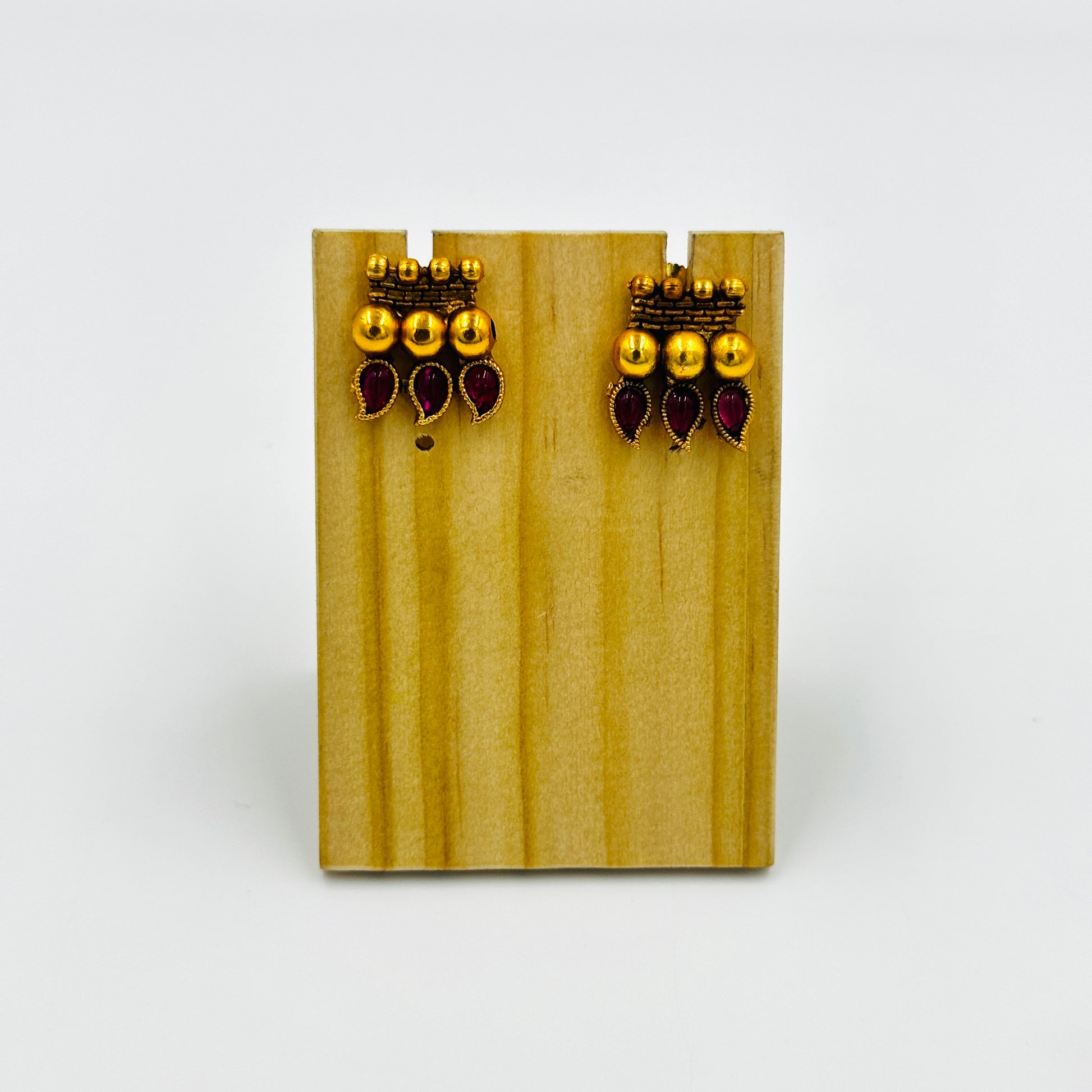 Elevate your traditional style with this antique gold-plated ruby stone necklace set.