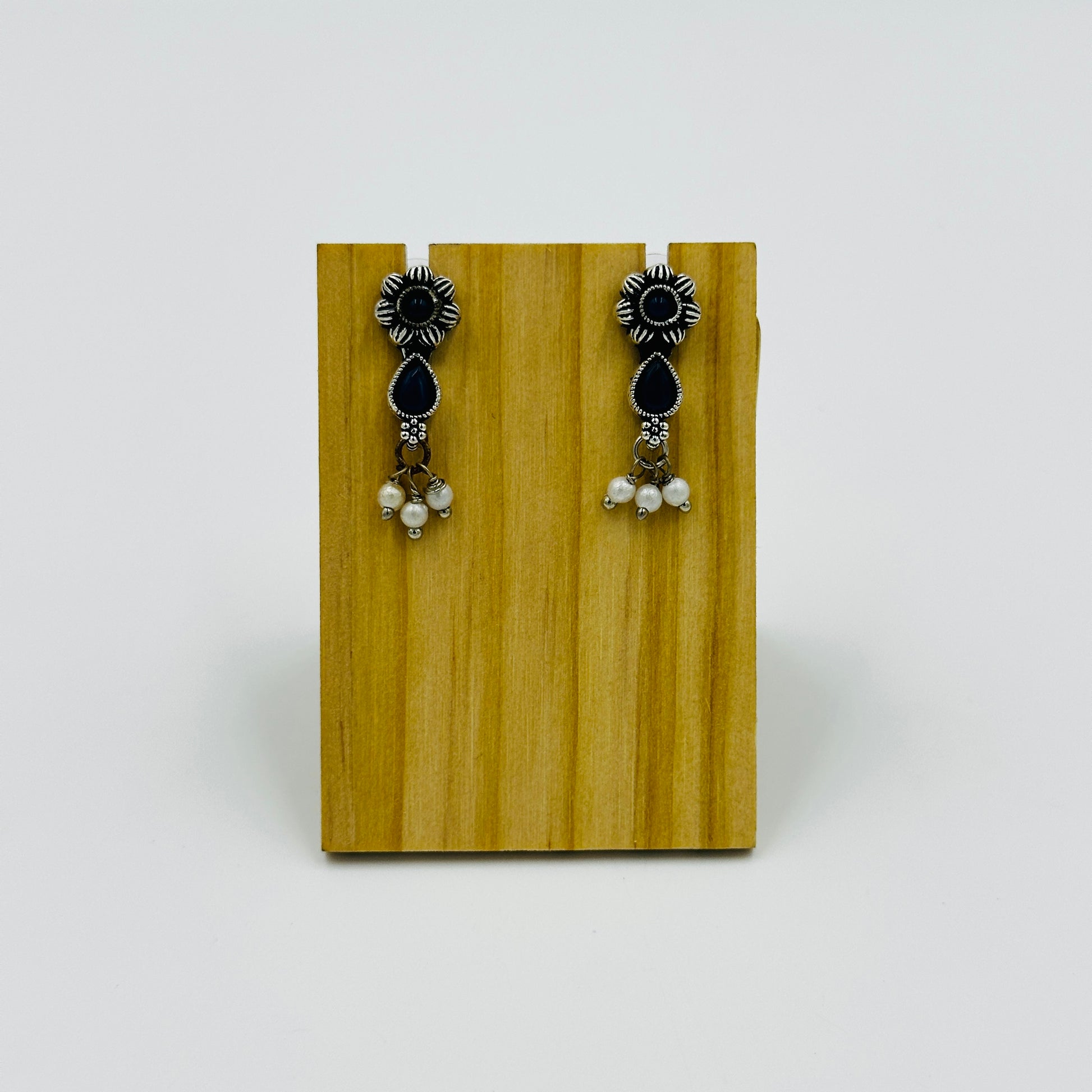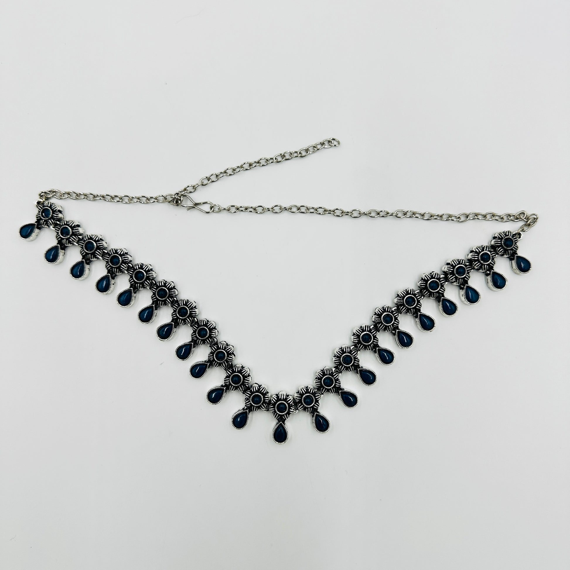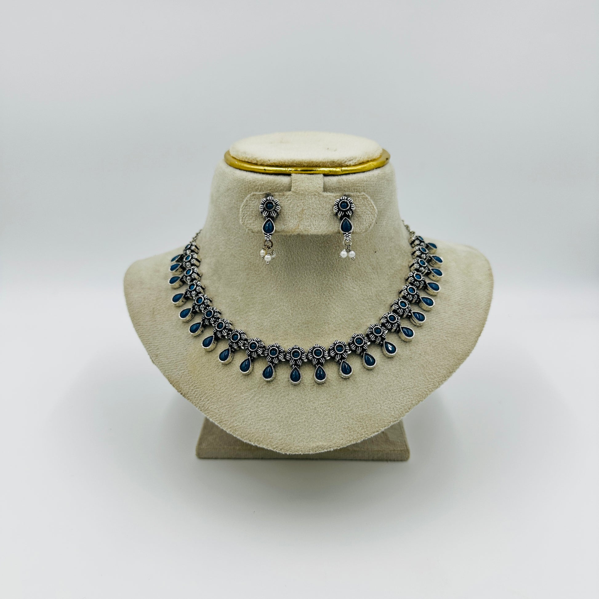 Add elegance to your ethnic look with this antique silver-plated necklace set.