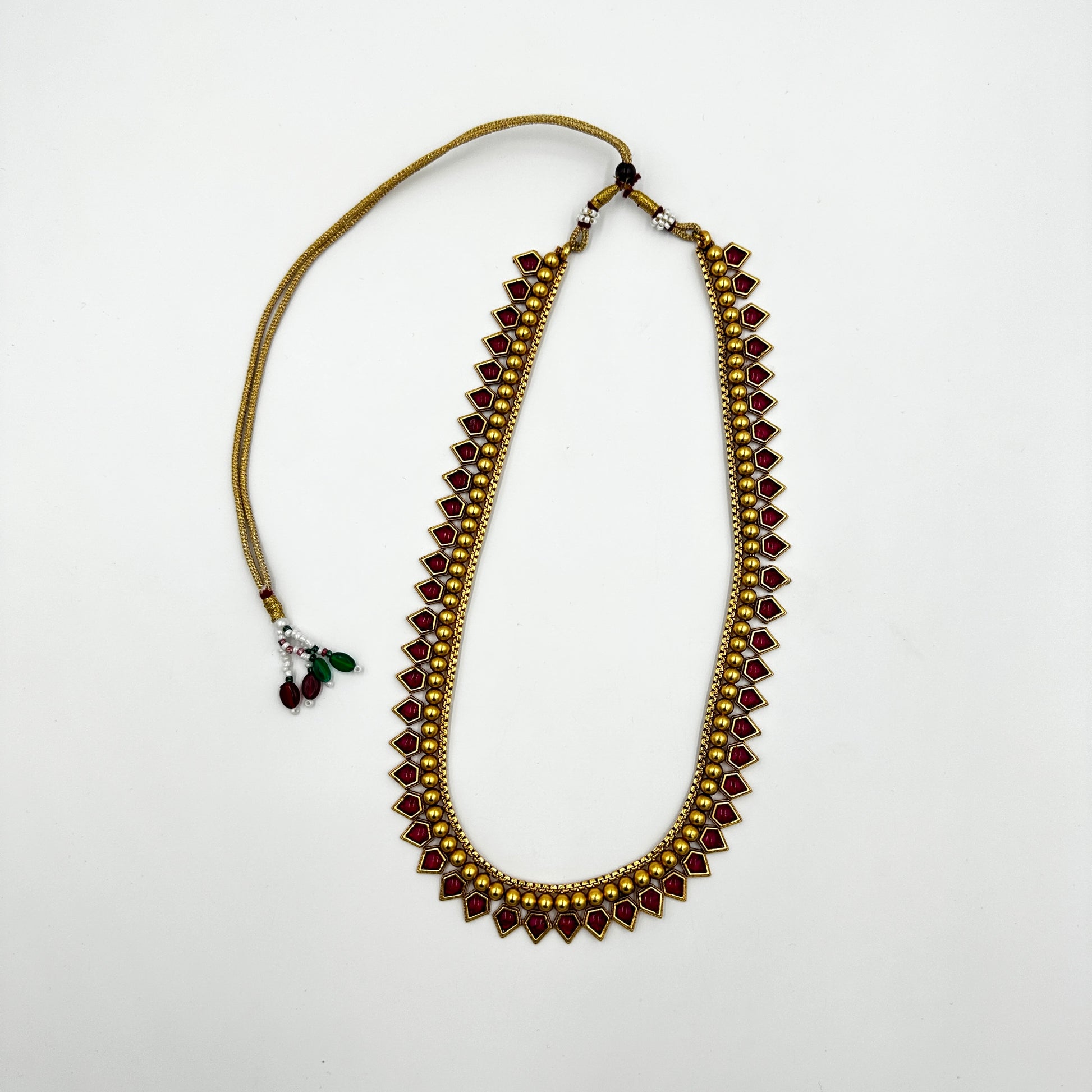 Add a touch of tradition and elegance with this gold and red stone necklace set.