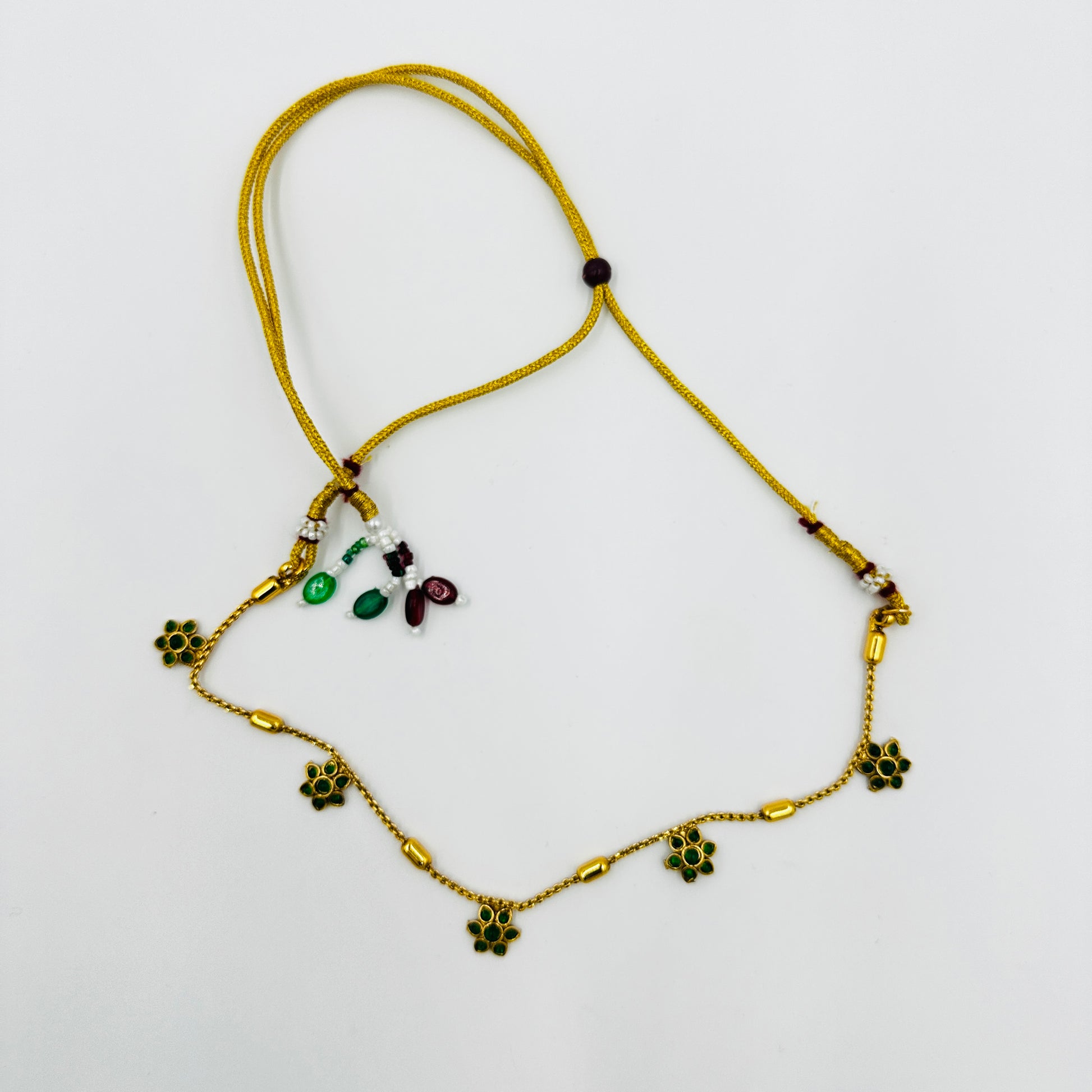Add a touch of timeless elegance to your ethnic collection with this green floral necklace set.