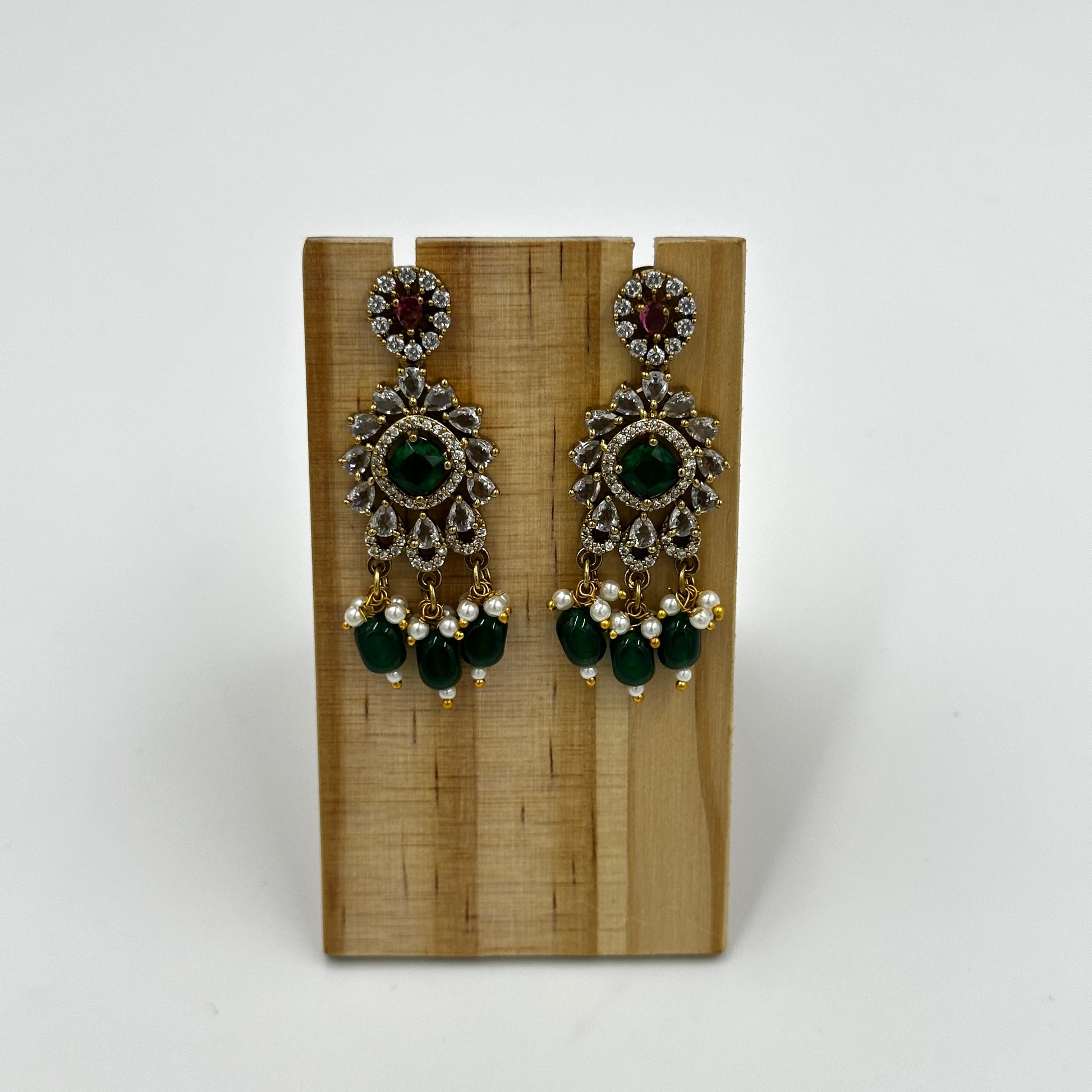 Design: Traditional with green stones, pearl drops, and intricate detailing