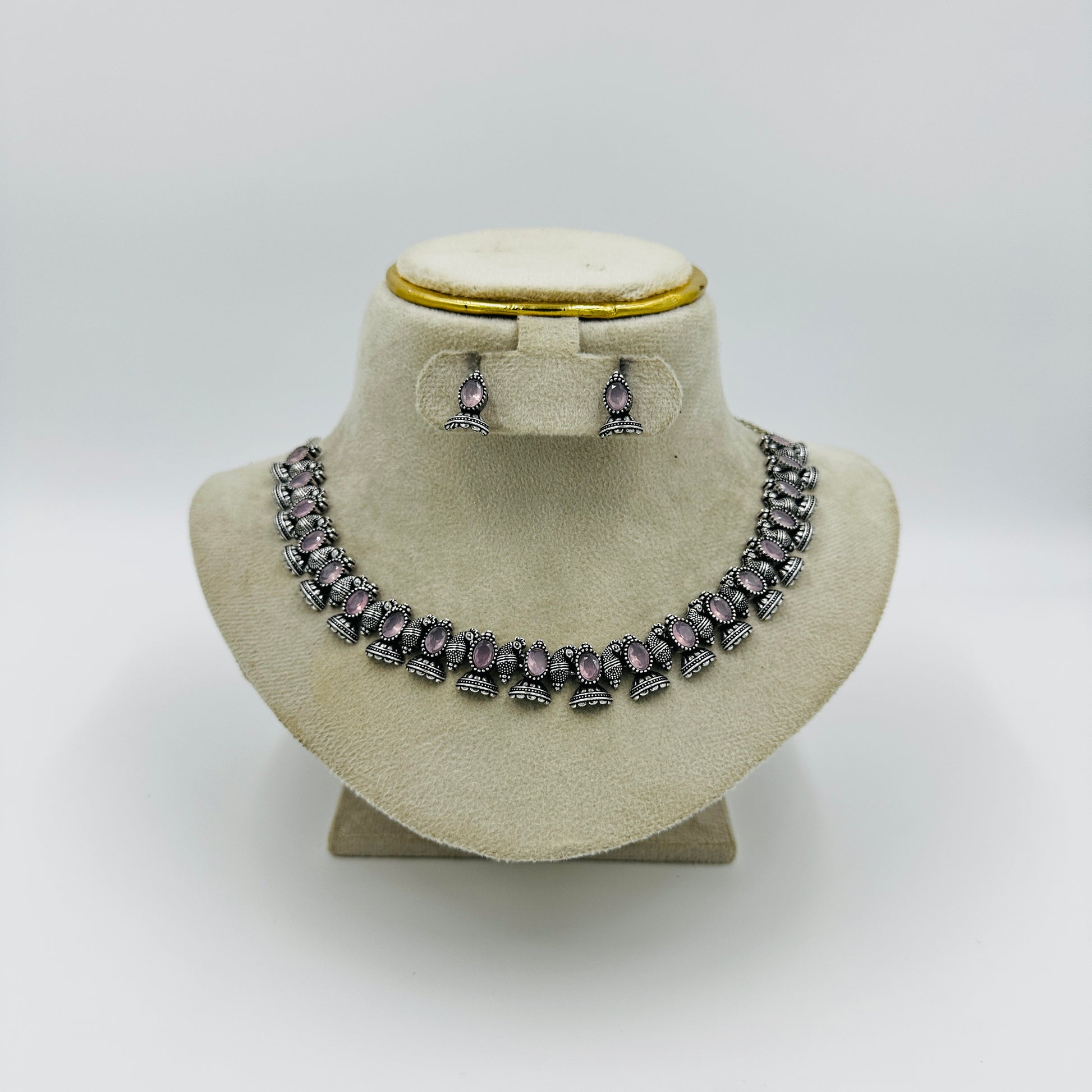 Designed with intricate patterns and pink oval stones, this set brings together traditional charm and modern styling.