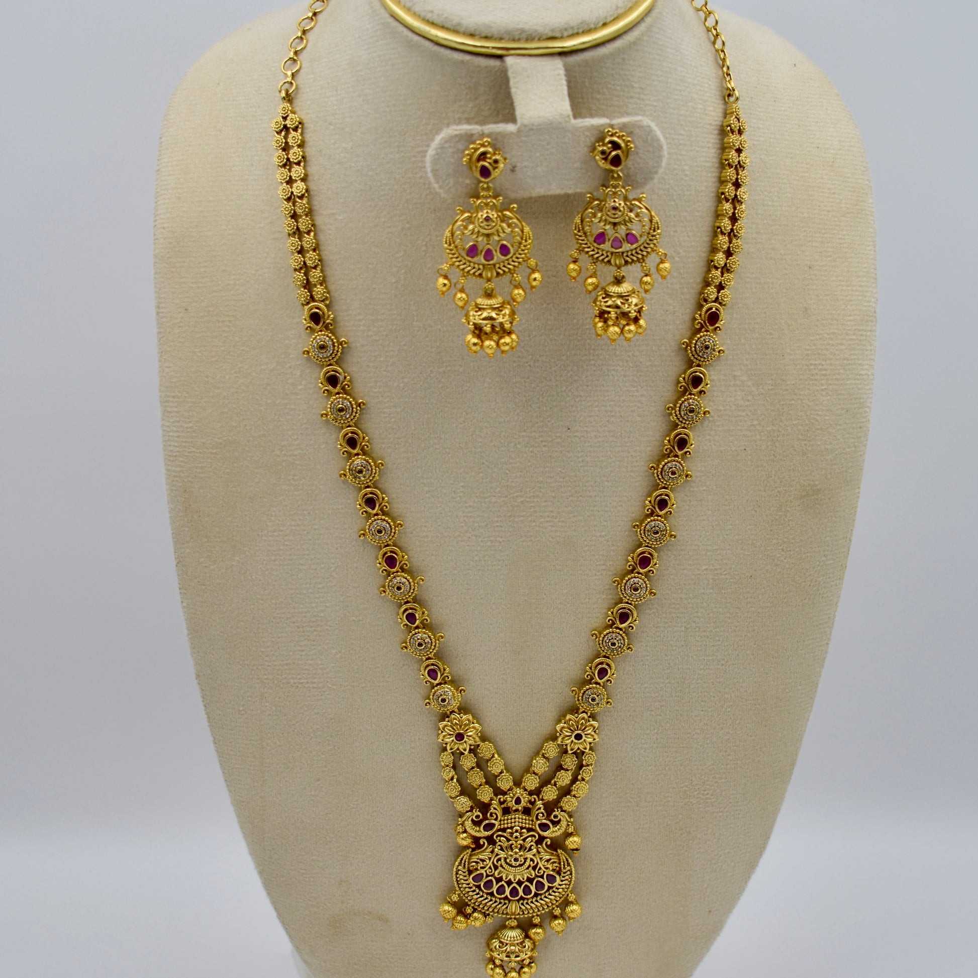 Regal Heritage Temple Necklace Set – Antique Gold Finish