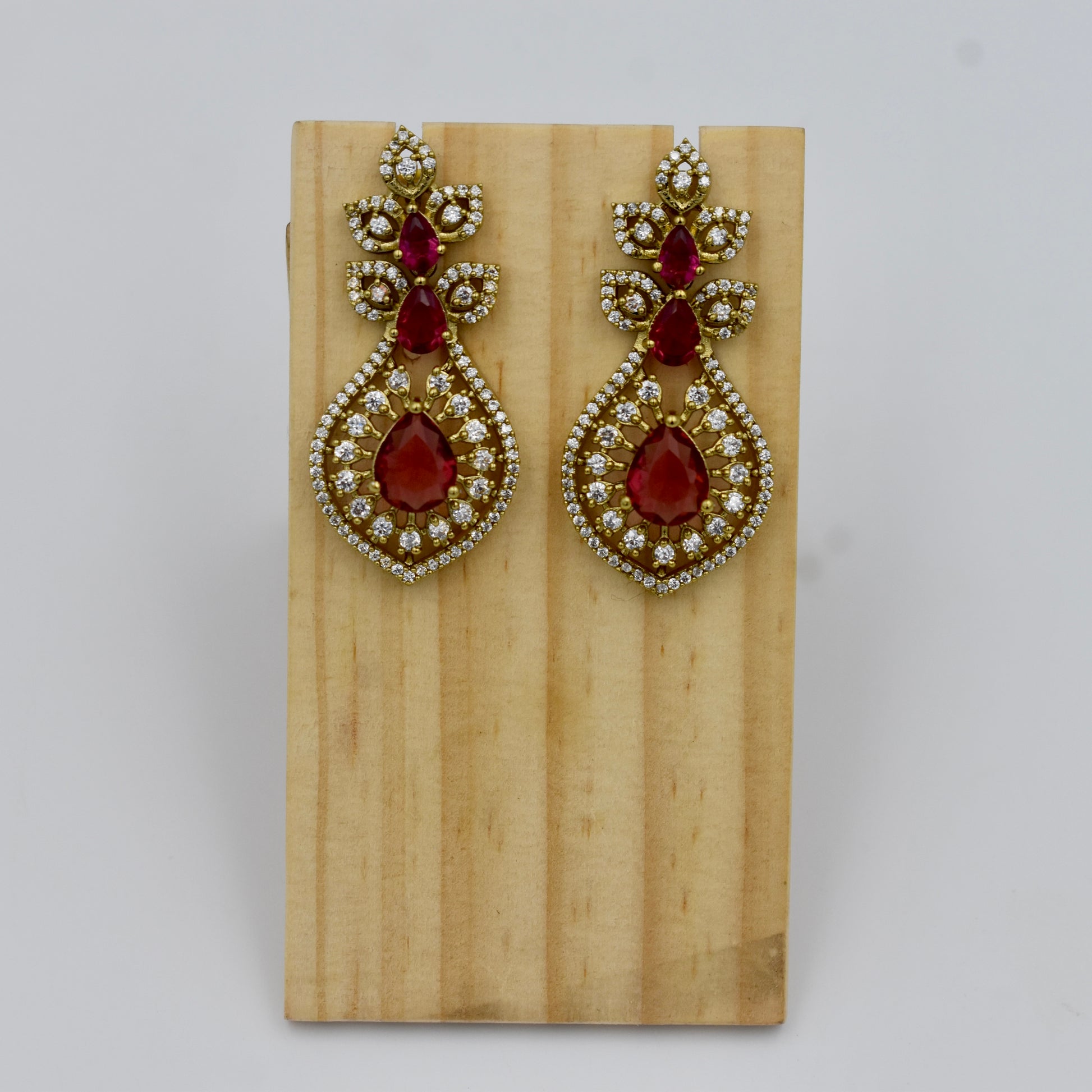 Designed with a stunning combination of deep ruby red stones and shimmering white crystals, this necklace and earring set adds regal charm to any outfit. Perfect for weddings, traditional functions, or special occasions.