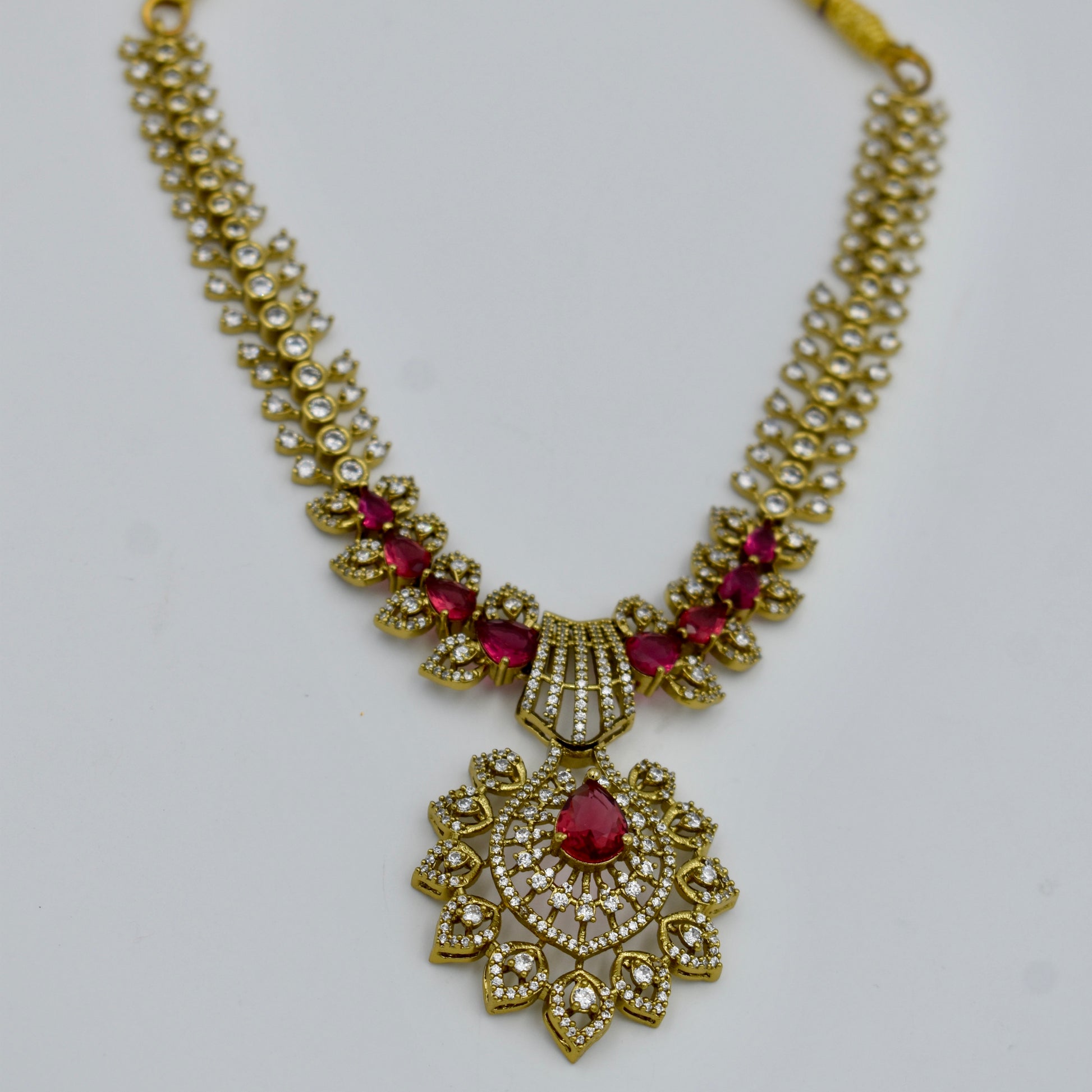 Royal Ruby Stone Necklace Set – Imitation Gold Finish