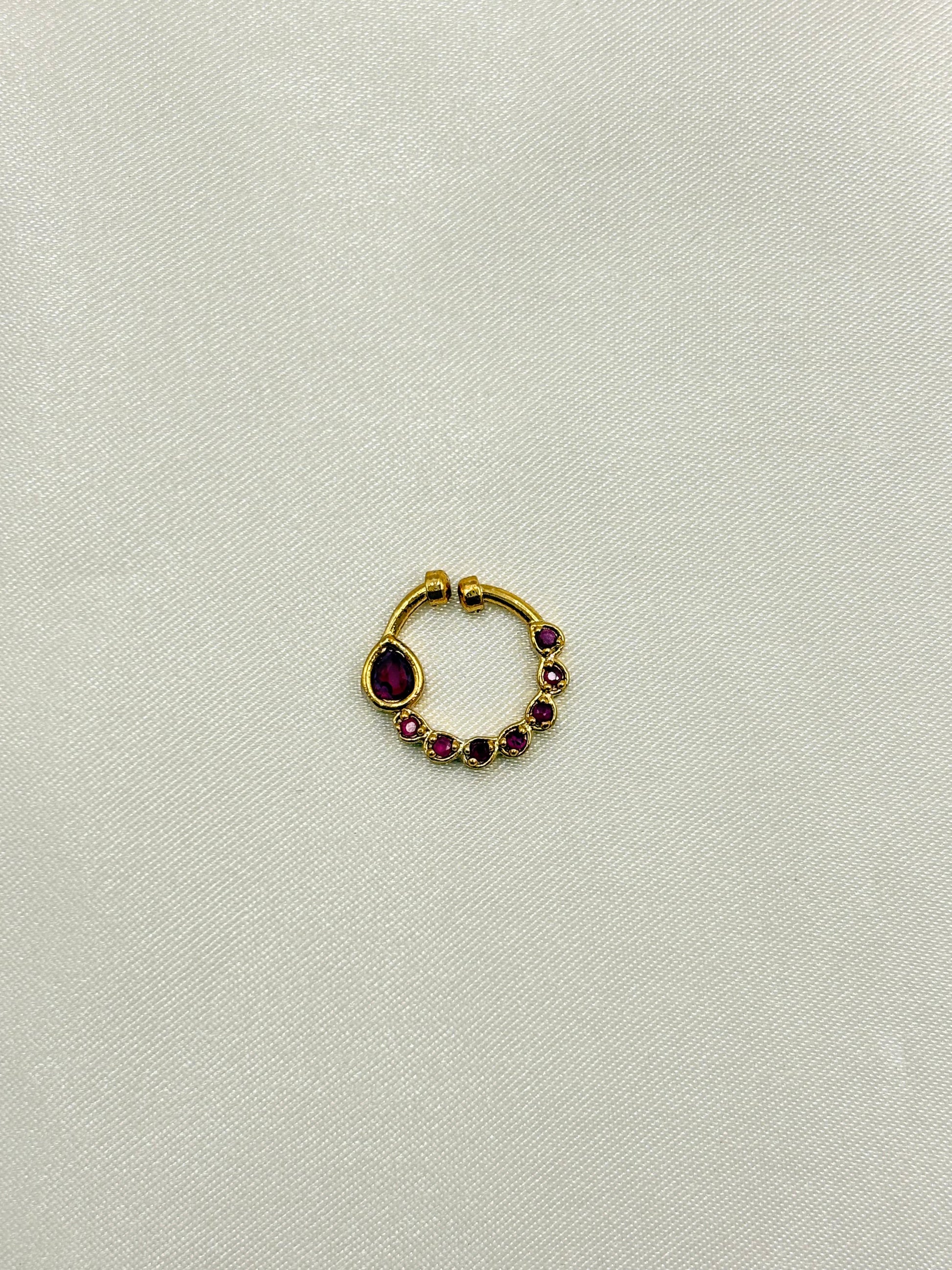 Ruby Kundan Nose Pin – Gold Finish Open Nose Ring