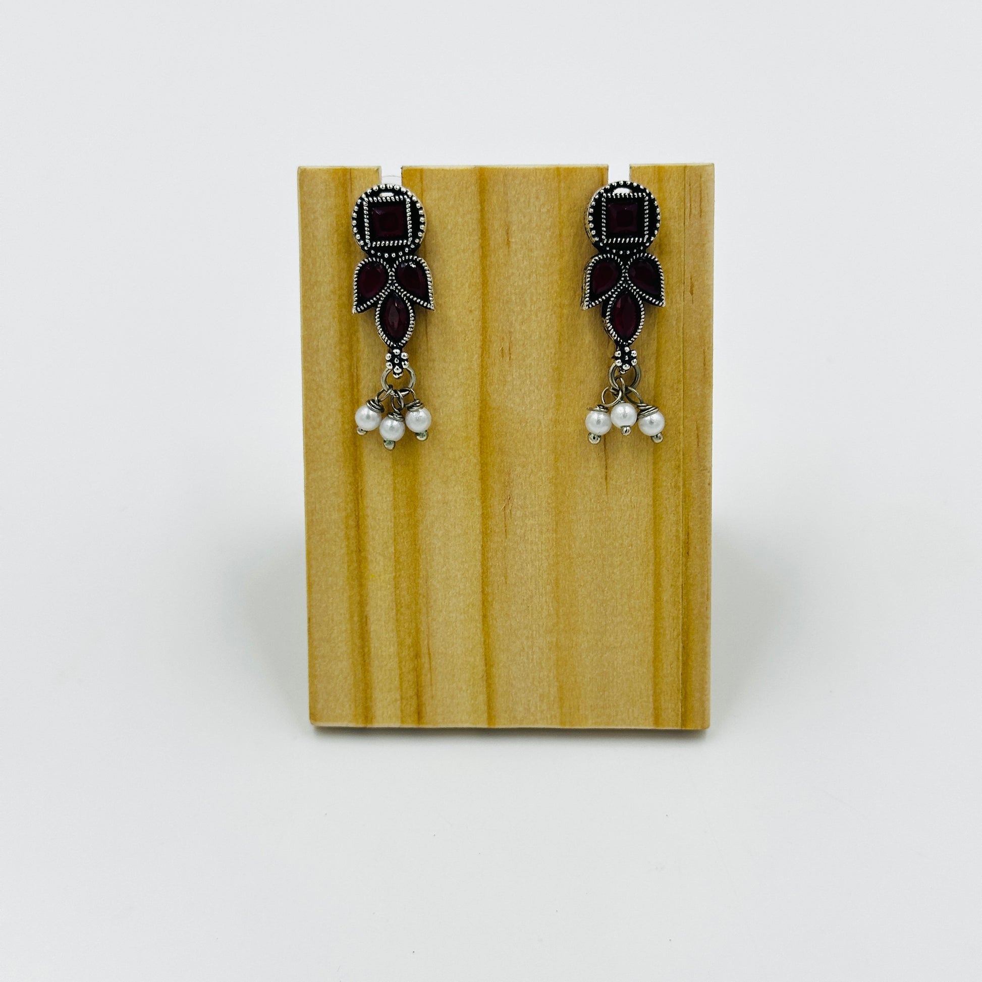 Ruby Red Stone Necklace Set with Matching Earrings – Traditional Oxidized Finish