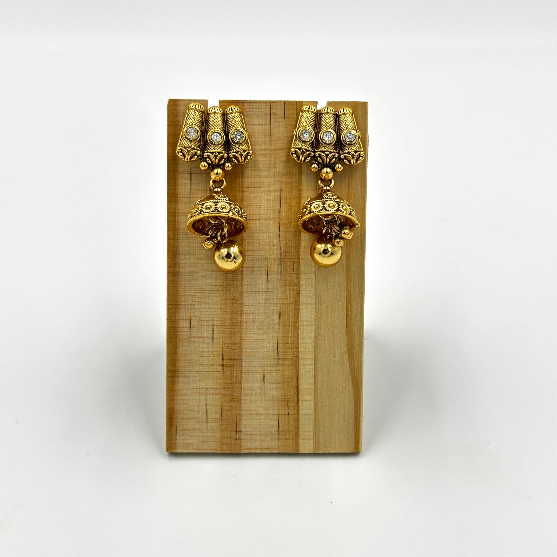 Traditional Gold-Plated Choker Necklace Set with Jhumka Earrings – Antique Temple Jewelry Design
